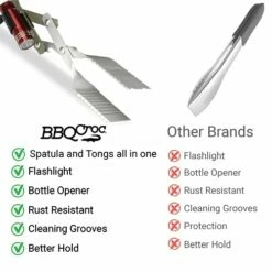 - CLIP ON FLASHLIGHT INCLUDED: As an added bonus, the BBQ Croc comes with a clip-on flashlight that seamlessly integrates into the tool. Illuminate your grilling area, ensuring perfect visibility even during nighttime grilling sessions.