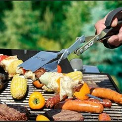 - ALL-IN-ONE SOLUTION: Say goodbye to the hassle of juggling multiple grilling tools. The BBQ Croc combines the functionality of tongs, spatulas, and a grill scraper into one convenient tool. Its 1 ¾ inch wide spatulas are perfectly sized for grabbing and flipping with ease, while the beveled edges slide effortlessly under stuck-on food.