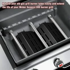 - 【Fits Perfectly】►Grill Burner and 7622 Heat Deflector Fits Weber Genesis 300 Series, 304 Stainless Steel Grill and Porcelain Steel Heat Plates Replacement Parts for Genesis E- 310 S-310 E-320 S-320 E-330 S-330 EP-310 EP-320 EP-330 CEP-310 CEP-320 CEP-330 with Front Control,Set of 5
