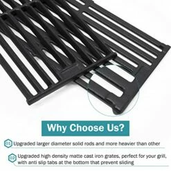 - ✅【High Performance】➤ Non-Stick – Brush the grill with a high-temperature oil, such as peanut or grapeseed, to prevent food from sticking to the cooking grates. ★ Evenly Heated – Cast iron grill grates not only heats food evenly, but also retain heat better and leave beautiful grill marks on the food, providing you with an excellent BBQ experience.