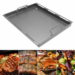 - ????【Features】The inlaid griddle is closer to the fire source and heats up more easily than other griddles placed on the grates to achieve the temperature needed to cook delicious food. Before use, please remove the heat plates to achieve closer to the heat source. The surface of the baking pan is made of coating, durable and easy to clean, need to be heated and oiled 1-2 times before use for better results.