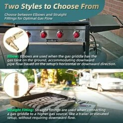 When installing the adapter, please position it downwards towards the ground or in front of the grill. DO NOT place the elbow adapter parallel to the griddle and towards the rear, as this could lead to the hose being too close to the grill’s heating area, resulting in hose melting and potential fire hazards. Safety first!