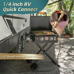 - 【Versatile Griddle Adapter 】Enables Easy Connection to Travel Trailer or Camper’s Low-Pressure System with 1/4″ Quick Plug.