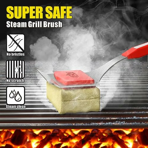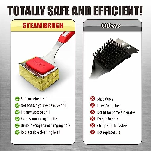 - Safe and Efficient – Cleaning with steam power can save a lot of elbow grease when dealing with those stubborn residues. With a bristle-free grill brush, you don’t have to worry about swallowing those dangerous wire particles that can break off and end up in your food. It’s safe and efficient!