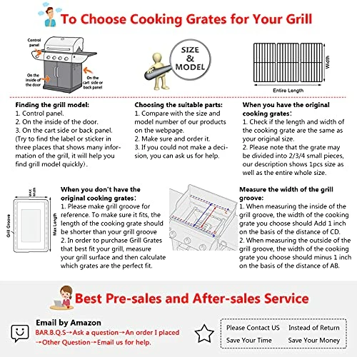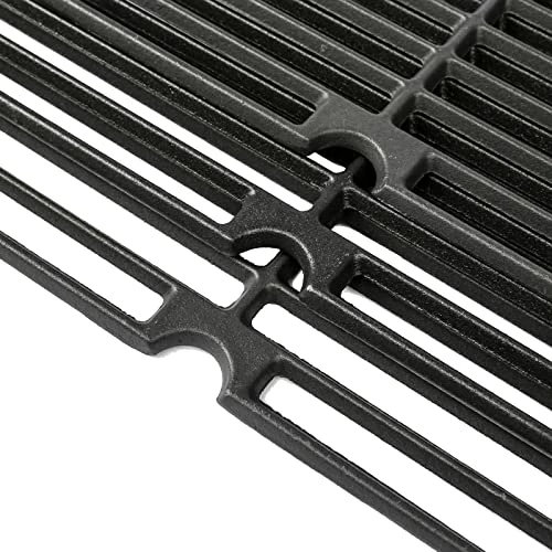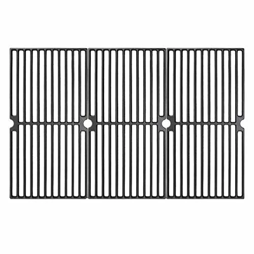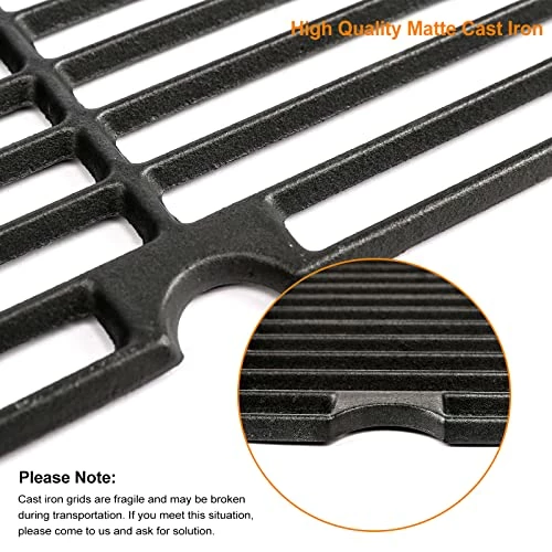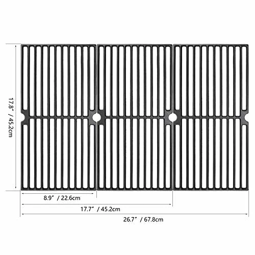 - 【Dimension】 – 17 3/4″ x 8 15/16″ for each grate, 17 3/4″ x 26 13/16″ for 3 grates. Package: 3 x Cast Iron Grates. Please check the size and model of your original parts again before buying. 【 Material 】: Heavy Duty Cast Iron, High Quality, Safe and Non-Toxic, Heat Evenly & Cooking Better.