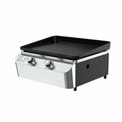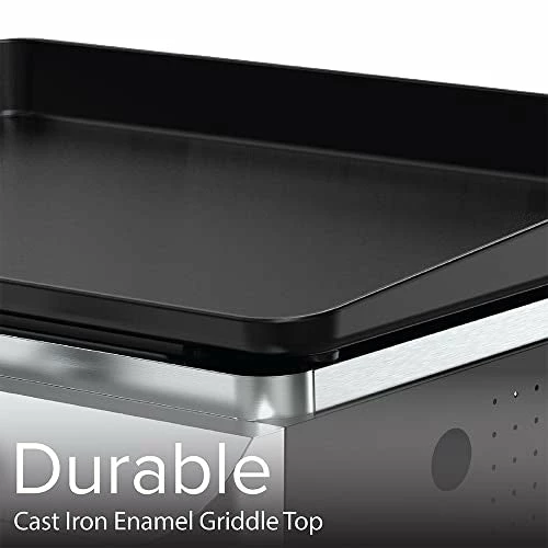 - Cast Iron Enameled Griddle Top: Durable cooking surface provides long-term performance. Stainless Steel Control Panel. Easy cleaning, and an overall enhanced cooking experience.