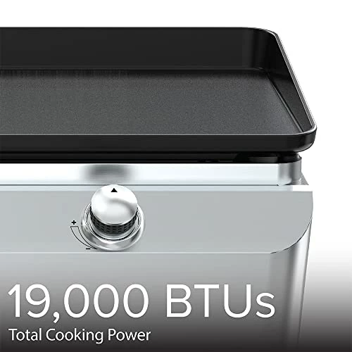Details: Designed to take the heat, this 323 square inch, durable enamel cast iron griddle cooks your meals to perfection. Two flat stainless-steel burners spread the heat from corner to corner for the perfect sear and sizzle. Both burners are controlled independently with an easy Push-and-Turn ignition offering up a total of 19,000 BTUs of grilling power. When you’re done cooking, a handy removable grease box makes cleaning a breeze. Second breakfast you ask? We say why not with the Nexgrill 2-Burner Portable Griddle. Cast Iron Enameled Griddle Top: Durable cooking surface provides long-term performance, easy cleaning, and an overall enhanced cooking experience. Stainless Steel Control Panel: Upgraded construction ensures quality grilling for seasons to come. Even Heat System: Stainless steel burners spread heat evenly for the perfect sear and sizzle. Push and Turn Ignition: Independent lighting of each burner with no batteries required. Removable Grease Cup: Easily dispose of drippings and food residue keeping cleanup simple.