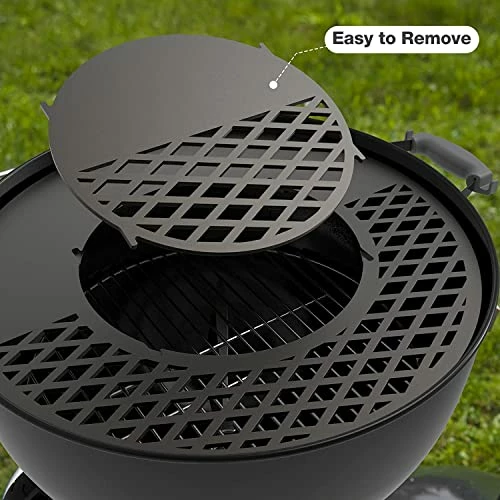 - 【Removable Central Sear Grate】The inner sear grate with raised side handles makes it easy to add charcoal while grilling, no need to remove the outside grate, perfect for traditional grilling.