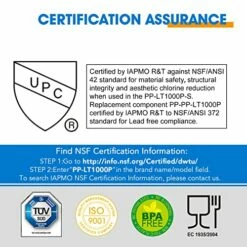 - ❄️???????????????????????????????????????????????????? ???????????????????????????????????????????????????????? -The filter is certified against NSF/ANSI 42 and 372 Lead-Free by IAPMO, filtering out 99% Chlorine, odor and improve water taste significantly. It also certified by European TUV, ROHS, REACH, Canadian CSA, BPA Free and Australian Water Mark. Only select products with Authoritative Certifications for your loved ones.