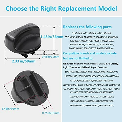 Details: Keep your refrigerator running at peak performance with this Reyhoar Water Filter Cap 2186494B. It is a replacement cap for your water filter covering so the housing isn’t open. Please check the compatibility with your previous part and your unit’s model number before ordering this replacement refrigerator water filter cap. Replaces the following part numbers: 2186494B, WP2186494B, WPL2186494B, WPLWP2186494B, AP6006022, 2186494TG, 2186884B, 4392866, 4392870, PS11739084, W10281557, B002ZNDHDW, B00DZU9D1E, B008DJWLZW, B008DJWNAK, B008DJT5ZG, B008DJKM0S, etc. Compatible brands and models include but are not limited to: Whirlpool, Kenmore, Kenmore Elite, Estate, Ikea, Crosley, Inglis, Thermador, Kirkland, Roper, Dacor, etc.