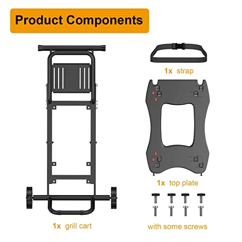 - 【Package】Including 1 x grill cart,1 x adjustable fixing strap and 1 x stand with some screws,dimension:46.5”(L) x 23.4”(W) x 29”(H)