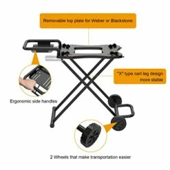 - 【Comfortable Design】Our grill cart comes with two wheels to make transporting and moving the cart easier, and the ergonomic side handles provide comfortable grip and mobility support, making it a great choice for outdoor grilling!
