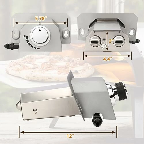 - 【????Cleaner Way】There is no more soot on the bottom of the pizza oven ►In manually letting the gas free flow for a about 20 extra seconds it this helps keep the burner lit ►Note: Can ONLY be used with the oven door off the oven and the chimney on. ►Gas burner fits for Ooni fyra 12 pizza oven, also fits Bighorn outdoor pizza oven, if you would like to use it for this two pizza oven, you had to drill two small holes for the screws to mount