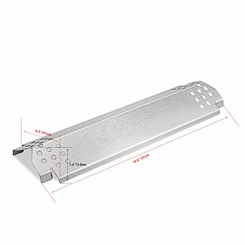 - Dimensions: Heat plate: L 14.6″ x W 4.3″ x H 1.4″, Material: porcelain enameled steel; Burner tube: L 14-7/8″, Material: stainless steel. PACKAGE INCLUDED: 4 heat shields, 4 burner tubers and hardware screws set